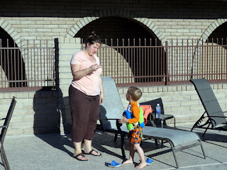 Jennifer & Austin at the pool at Leaf Verde RV resort, where we stayed for a month in Buckeye.