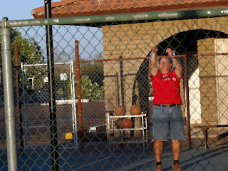 And finally, ending the blog on an up note, I just sank a 25 foot jump shot to win the game in overtime....loud cheers enveloped me, as I walked off the court. Oh, Nancy was able to catch me shooting this game-winning shot. :-))Until the next blog, RVing Beach Bums.