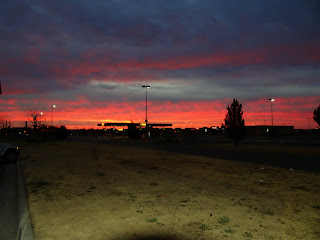 I've heard the old saying, "red sun at night, sailor's delight, red sun in the morning, sailor's take warning". Well, take heed Joe. Above pic was this morning from the Walmart parking lot. We are expecting snow/rain mix today from Roswell to Alberquerque. UGH! I hate driving in the rain, much less snow. Oh well, it is what it is! We will go, and take in a few National Monuments in the area around the Albeq/Santa Fe area. Till then, RVing Beach Bums.
