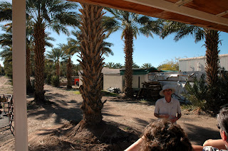This was our little tour wagon and the guide was actually the 42 year old son of the the owner/founder of the orchard. Martha is actually his grand mother. We never realized how much effort went into the pollenization, cultivation, and harvest of these dates, in this desert setting. Each female tree (8000) must be hand-pollenated from the flower of the 80 male trees. The guide went into excrutiating details of the entire operation of the family run and operated farm/ranch.