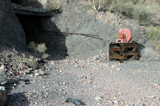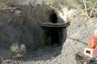 OK, above is the King of Arizona gold mine. I just love going to old mines. I don't know why, but they just intrigue. Maybe I think I'm going to stumble on a large nugget one day. :-) Below, I am in the opening of one of the mine openings. I think this one was used for storage, as I saw a large cache of unused dynamite sticks that had hardened into a solid state from their normal state. I might be wrong about these sticks however.