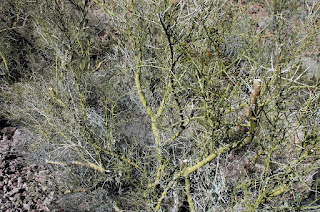 There are a few additional palms scattered higher up in Palm Canyon. As you enter Palm Canyon, you will see some "palm like" plants that can be confusing. These plants, nolinas, grow out of cracks or on ledges, especially on the north wall of the canyon. The nolinas are much smaller than palms and do not develop a trunk. There were many of these plants all along the canyon walls.