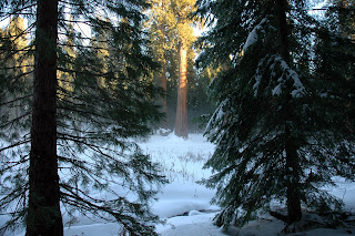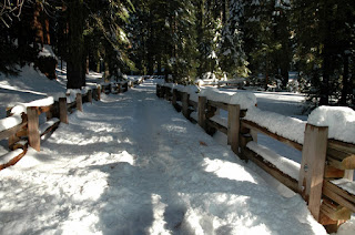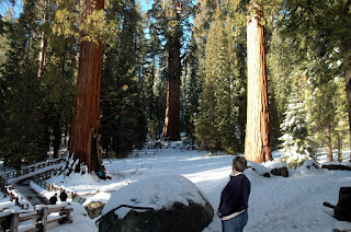 Even though the pics looks like the temps are freezing, actually, it wasn't bad. The temps were around 40, and no wind at all, with a bright sun. So, it was ok for walking and enjoying the beautiful scenery. One cannot fathon the size of these guys. Average height: 250 feet. Average width: Two highway lanes (General Sherman is three lanes wide at the base.)
