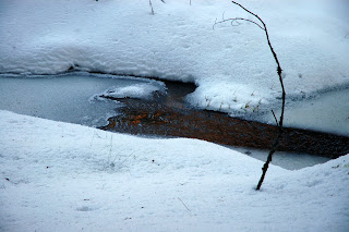 I went down this trail for about 200 yards, in deep snow (Nancy stayed in the Jeep) to take the next few pics. Note the rising steam/fog in the meadow lowland.
