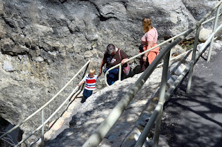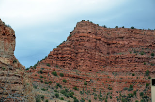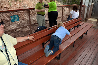 Austin seemed to be in his element as he "blazed" the paved-path trail thru Walnut Canyon. He went in just about every dwelling he was allowed, and posed dutifully at each one. What a ham, just like his Grandma!