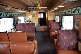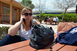 The train was going downhill here and its brakes were really loud as Austin and others covered their ears. And another look at our engine as it has just disconnected and is passing by on the way to the refueling track for the next day.