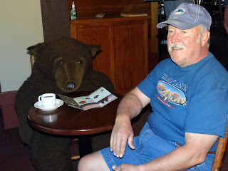 Inside Wuksachi Lodge, I tried picking the spirits of this poor little fella. I asked him, "Why the long face"? But he just sighed and said nothing...(sorry) We had a yummy lunch, including some sweet tater fries.