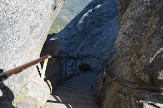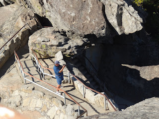 Here I am climbng up Moro Rock. Nancy is already up there, looking down. I let her have the adventure of climbing up these precarious (need a translation here?) steps to the top. See the rail below? You don't see me out there do you? Nancy passed by here 10 minutes ago. She's aleady at the top. I can't take ALL the fun now can I?