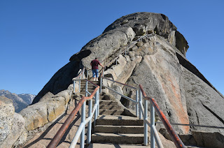 From the web: Moro Rock is a granite dome located just off the Generals Highway near Giant Forest. On any given day visitors may see rock climbers clinging to Moro Rock’s cracks and knobs. For the rest of us, there’s a 1/3-mile staircase from the parking lot that ascends more than 300 feet to the summit. The reward: spectacular views of the western half of Sequoia National Park and the Great Western Divide. Above is a pic from Moro Rock.