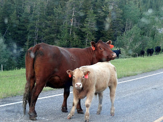 On Chief Mountain HWY on the way back to the US, Nancy snapped a pic of this little fella (not so little) grabbing a snack. A lot of the cattle ranches in the west permit their cattle to wonder "open range", so when traveling on roads that sign "open range", be very careful and vigilant.