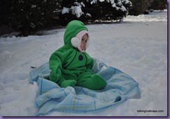 I swear these are all separate photos. Nicole was a little surly about being outside in the snow. She has not found it to be very much fun so far. The first time we were out she tried to army crawl and got a face full of snow. She was not impressed.